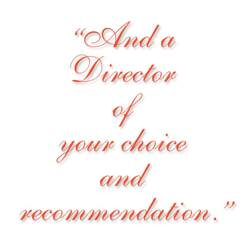 We also offer the option of working with a director of your choice and recommendation, other than the ones on board with us.